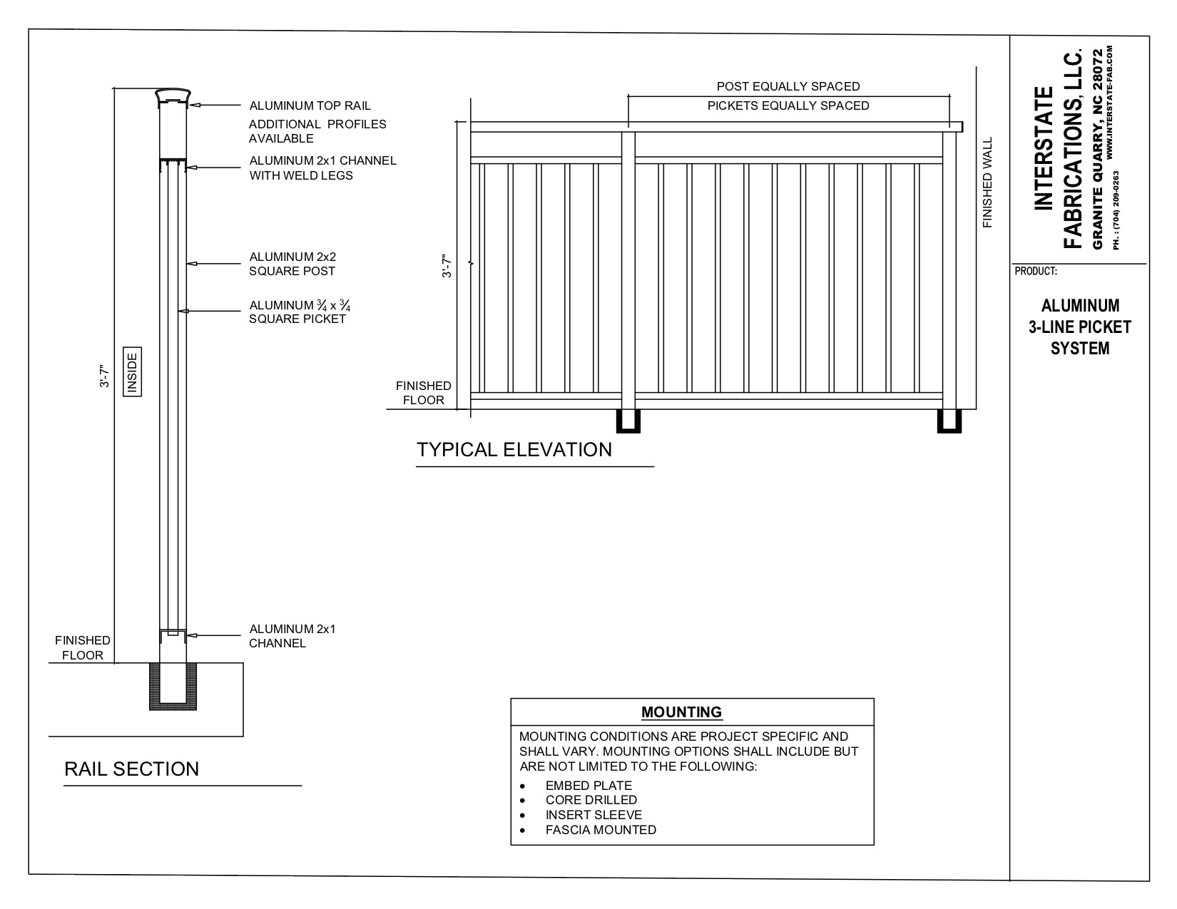 Our standard aluminum picket railing is perfect for your personal yard or porch. We also offer steel pipe railing. VARIATIONS:2-line picket3-line picketHorizontal picket